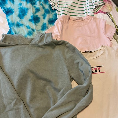 - H&M collegepaita, mustavalkoinen. Hieman pesuhaitua kauttaaltaan, mutta yleisilme yhä siisti. Koko 134/140.
