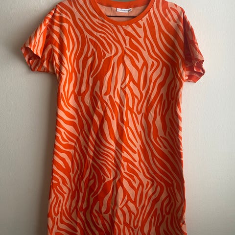 Riva-merkin (nykyinen toive) t-paitamekko kokoa L. Hyvässä käytetyssä kunnossa. Mekossa taskut sivusaumassa.