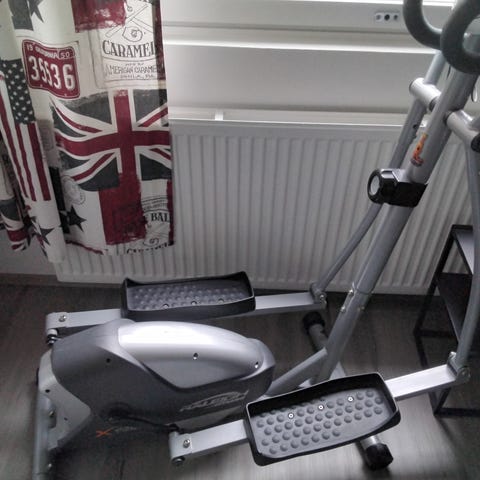 Crosstrainer sopii kotikäyttöön. Laite on musta ja harmaa, ja siinä on digitaalinen näyttö harjoitusten seurantaan. Crosstrainer tarjoaa monipuolisen harjoittelumahdollisuuden ja soveltuu kaiken tasoisille käyttäjille.