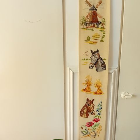 Seinävaatteessa itessään ei ole mitään kiinnitys juttuja, millä sen sais seinälle, vaan ite pitää värkätä jotain ja muutenkin sen ylä- ja ala pää kaipais jotain ompelemista, ettei se kangas lähe purkautumaan.