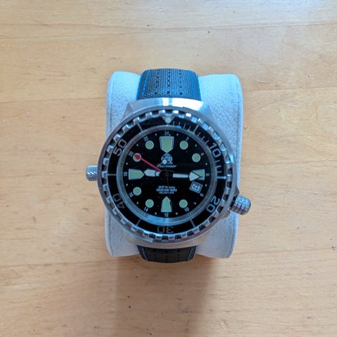 Ikäisekseen siistikuntoinen ja täysin toimiva Tagin sukelluskello. Patteri juuri vaihdettu.