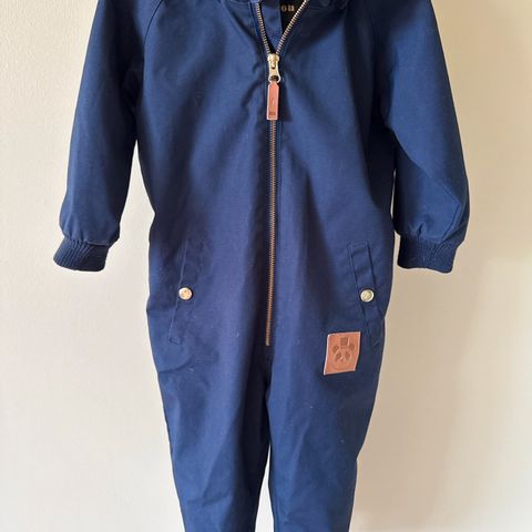 Erinomaisessa kunnossa oleva Mini Rodini pico-haalari koossa 92. Ei pesty eikä tarvetta pesulle. Pieni jälki toisen lahkeen resorissa, näkyy kuvassa.