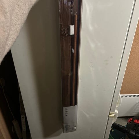 Käytetty vähän. Säleet alumiininharmaita tai harmaa, muut osat ruskeita.