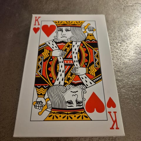 Pelikortit (52 kpl) huonokuntoiset, on paljon pelattu ja niissä on kulumaa, taitoksia ym. jälkeä. Uusi lähes samanlainen korttipakka tulee mukaan.
