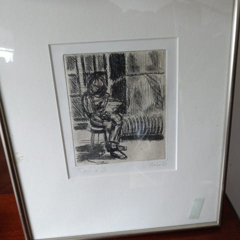 Grafiikkatyö, koko n 24cm x 29cm, Kehykset 36cm x 44cm.