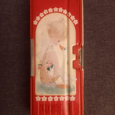 Hieman ajan patinaa. Voi pitää joko pysty- tai vaaka-asennossa. Mitat 22,5 x 9,5 x 4,5 senttiä. Pään kohdalla pituus 28,5 cm.