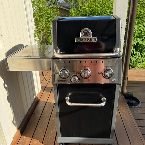 Texas 6+ kaasugrilli, 6poltinta ja sivukeitinlevy, grilli ollut vähällä käytöllä ja on hyvässä kunnossa. Mukana myös 2-puolinen parila, toinen puoli sileä ja toisella puolella urat, vaihtoehtoisesti ritilä parilan tilalle. Molemmilla puolilla työtasot.