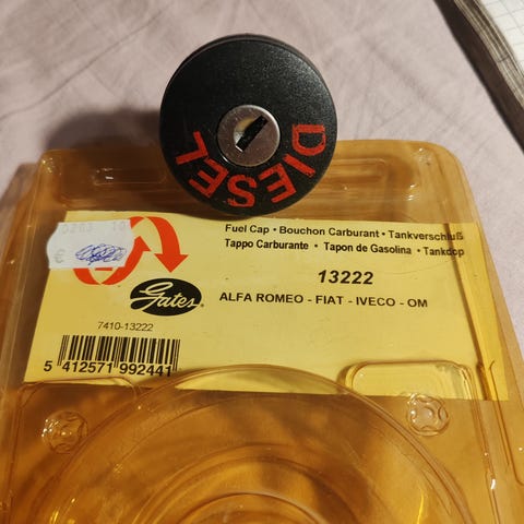 Vanhempi bensatankin korkki kahdella avaimella. Ollut käytössä Fiatissa,