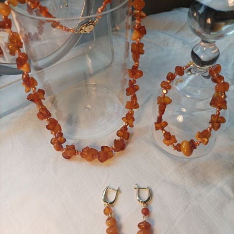 Kauniit ja priimakuntoiset vintage meripihkahelmet.