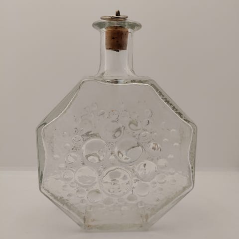 Riihimäen lasi. Väriä todella vaikea tallentaa kameralla. Ehjä, ei lasihometta. Pohjassa signeeraus.