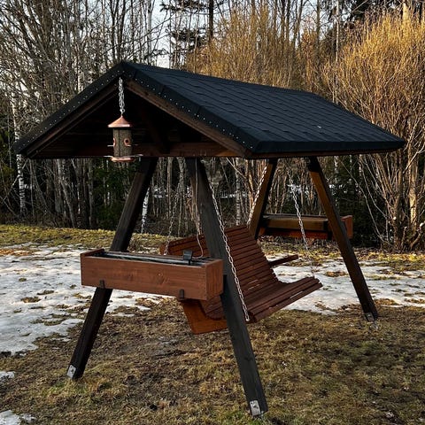 Musta puinen pihakeinu