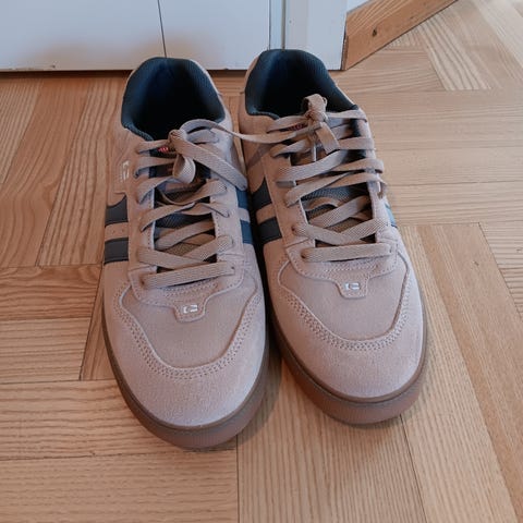 Myydään uudet mokkanahkaiset tennarit. Koko 43. Ei pidetty. Salama haalistaa väriä, on musta