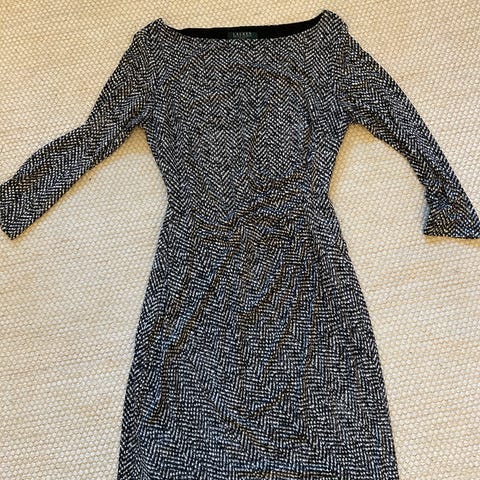 Tummansininen laadukas, kaunis ja vuorellinen kotelomekko Ralph Laurenilta.