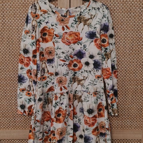 Myydään Ma-ia Family tyttöjen mekko koko 128. Ihana mansikkakuosi. Mekossa pari tahraa edessä, jotka eivät ole lähteneet pesussa, mutta nämä sulautuu mielestäni kuosiin eikä pomppaa silmille. Takana helmaosassa myös pieni reikä. Viat huomioitu hinnassa.