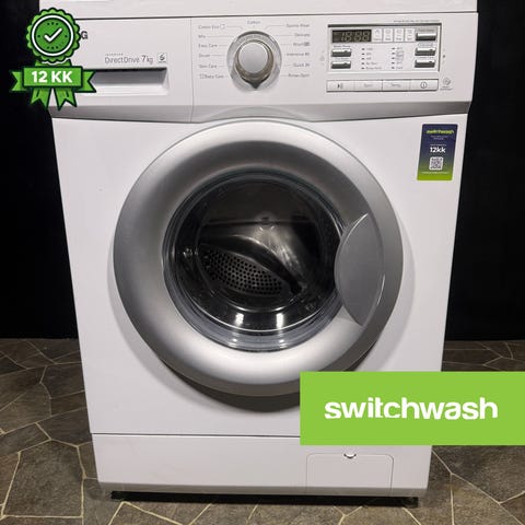 Hyväkuntoinen LG:n edestä täytettävä pesukone, jossa monipuoliset pesuohjelmat jokaiseen tarpeeseen.