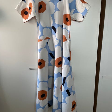 Marimekon haaveellinen unikko mekko koossa 36. Pidetty vain pari kertaa, oikein hyvässä kunnossa. En löytänyt huomauttamista.
