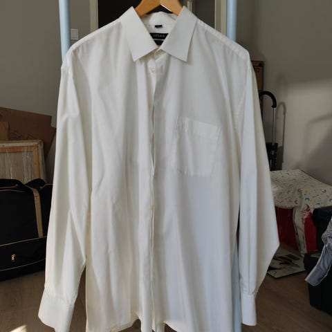 Valkoinen formaali kauluspaita. Paikka kalvosinnapeille hihoissa. Juhlapaita tai muu formaalimpi käyttö. Kolme kertaa käytetty, tosi hyvä kunto. Koko 16 slim fit