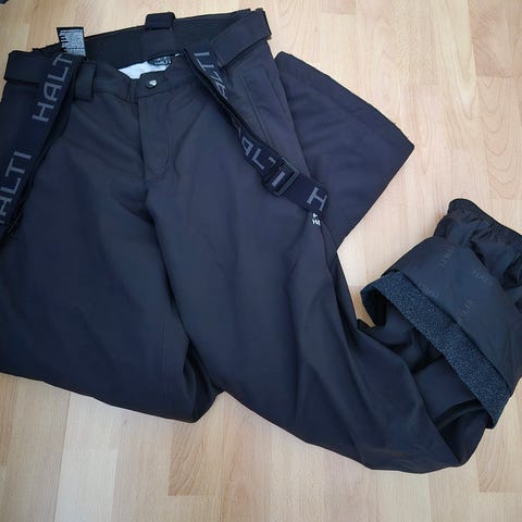 Mustat. Halti Drymaxx. S. Lasketteluhousut, lautailuhousut, toppahousut. Mallin nimeä ei muista. Irroitettavat henkselit, ventilaatiot reiden ulkoreunalla, avattavat lahjeensuut+lumilukot, 2 kpl vetoketju taskut, kuminauhakuja takana venyy toki lisää, vyölenksut, verkkovuoraus. Erittäin vähän vain laskettelussa käytetyt siistit ehjät, ei viiltoja. Huom, aina kun on ns. ventilaatiot vetoketjulla niin ovat ns.normi perusmalleja kalliimmat! Vyötärö 86cm+venyy toki haara-vyötärö 30cm, haarasta suoraan reiden sivuun 34cm, haara-lahkeensuu 80cm, lahje 26 cm. Ei sovituksia, ei toridiiliä, en tingi. Lisäkuvia/tietoa saa aina pyytämällä. Nouto tarkka aika etukäteen sovitusti ma-pe 10-16 Hki88 tai postitse pakettina.