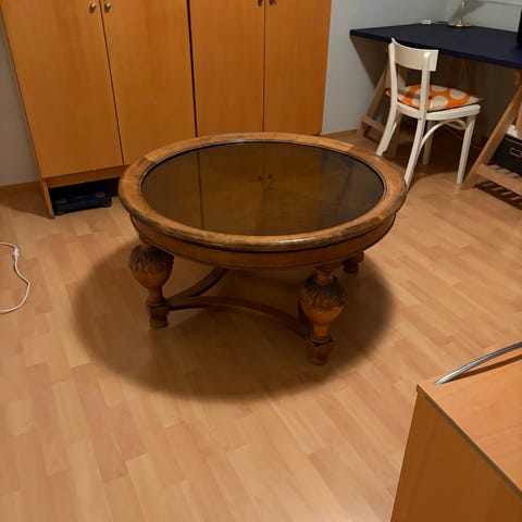 Klassinen rokokootyylinen pyöreä pöytä, valmistettu kestävästä puusta. Pöydän väri on vaalean harmaa, ja se sopii hyvin erilaisiin sisustustyyleihin. Pöydän mitat ovat kompaktit, mikä tekee siitä ihanteellisen pienempiin tiloihin tai sivupöydäksi. Pöytä on suunniteltu tarjoamaan käytännöllisyyttä ja tyylikkyyttä kotiisi. Kauniita yksityiskohtia.
