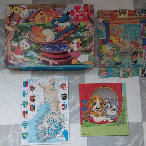 Vintage palapelit mm. Aku Ankka sekä Aku Ankka lautapeli