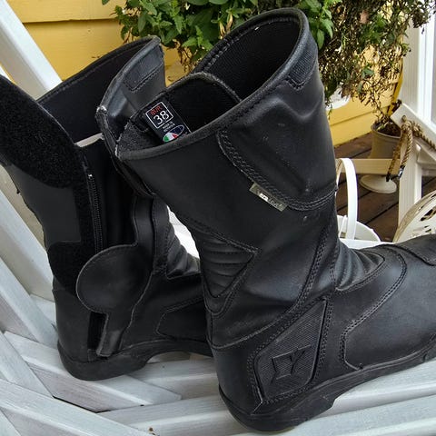 Vanhat, mutta erittäin vähän käytety moottoripyöräsaappaat, säilytetty varatossa. Käytetty aikaan kolmella pidemmällä Suomen reissulla ja muutaman kerran satunnaisessa lyhyemmässä matkassa. Koko 42.