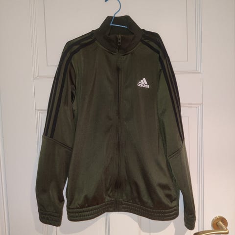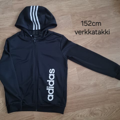 Adidaksen musta takki. Materiaali jotain verkkatakin ja softshell-takin väliltä. Ehjä, siisti ja hyväkuntoinen.