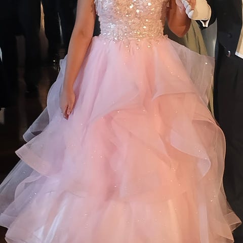 Upea, kerran tanssittu sininen (Royal Blue) vanhojentanssimekko. Mekossa on runsas, kerroksellinen glitterillä viimeistelty tyllihelma, joka liikkuu pehmeästi tanssiessa. Mekko on kevyt päällä ja todella mukava käyttää.