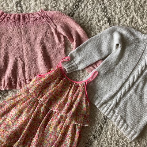 Kaikissa siisti, käytetty kunto. Koot välillä 120-130cm, olleet käytössä samaan aikaan. Me&i-mekko 110/116cm mutta tosi reilu mitoitus. Eläintalous.