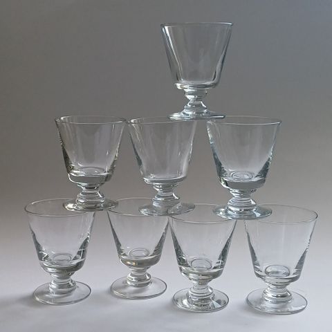 Tässä kohteessa myydään kaksikymmentäneljä (24) kappaletta Gunnel Nymanin GN 64 mallin sherry- tai madeiralaseja. Kaunis ja orgaanisen vähäeleinen GN 64 oli Nuutajärven lasin tuotannossa vuosina 1948-1968.