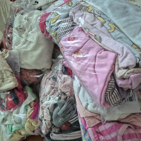 Koot 60-62, eli noin 4 kk ikäiselle vauvalle vaatetta. Ehjiä, siistejä ja käyttökelpoisia. Ei pinttyneitä tahroja tai muuta ikävää.