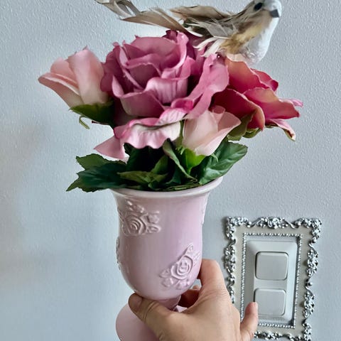 Romanttinen tekokukka ja maljakko sopii hyvin lahjoja pöytäkoriste postitus onnistuu