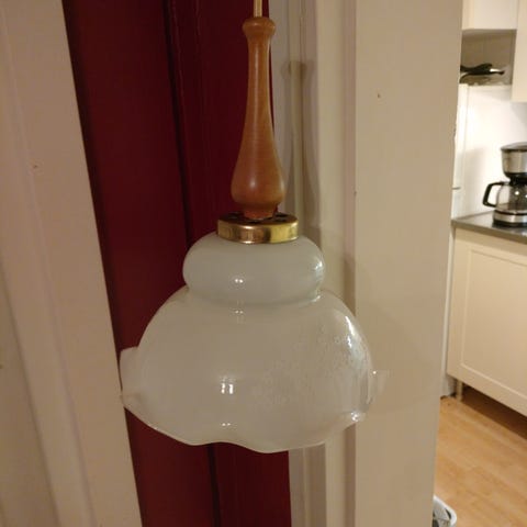 Hyvässä kunnossa oleva vintage kattovalaisin hissillä, maitolasia. Lasi on ehjä ja ei vikoja.