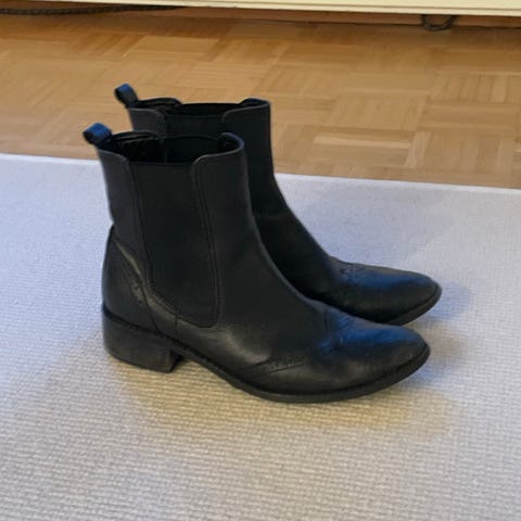 Myydään mustat nahkaisten naisten nilkkurit, koko 39