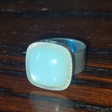 585 keltakultaa ja valkoinen opaali (kivessä pikkuruinen kolhu joka ei käytössä erotu), kiven halkaisija 6mm. Kuvioleima, pitoisuusleima sekä vuosileima löytyy.