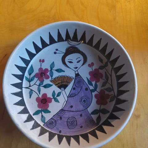 Ehjät, pienet, tummansiniset kuppi ja lautanen.