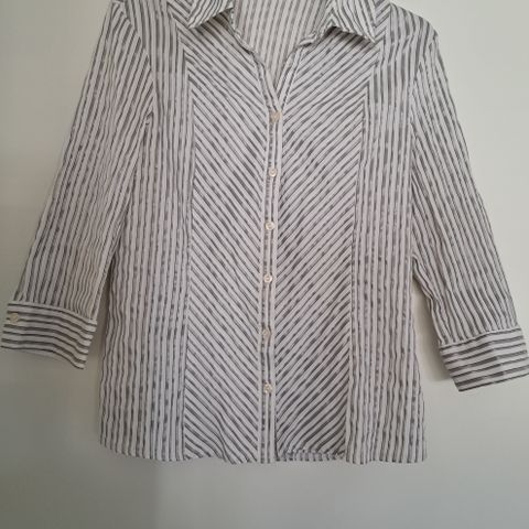 Hyväkuntoinen musta juhlava paita. Takana napitus. Koko 46. Hintaan lisätään postikulut.