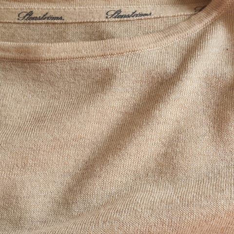 Christian Hirth, vadelmapunainen/vaaleapunainen neuletakki.