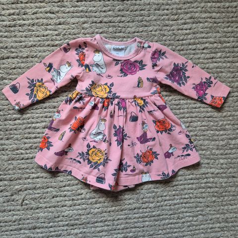 Myydään Moomin by Martinex vauvan mekko koossa 62. Mekon helman alla napitettava bodymainen alaosa.