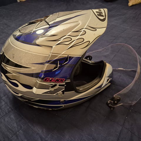 Ylimääräinen moottoripyörä/mopo kypärä visiiri HJC! Ehjä ja kunnossa! Näyttävästi mielellään päiväaikaan käytettäväksi ajossa! EN postita ja käteis maksu!