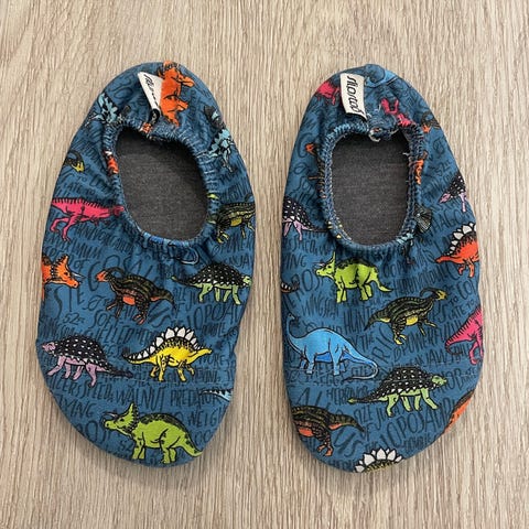 Monikäyttöiset lasten tossut sisä- ja ulkokäyttöön. Ihanteelliset myös uimahalliin tai rannalle. Päällinen hengittävää ja nopeasti kuivuvaa materiaalia. Liukastumista ehkäisevä pohja. Tossujen kärjet vahvempaa materiaalia, ettei mene puhki niin herkästi. Söpö dinokuosi.