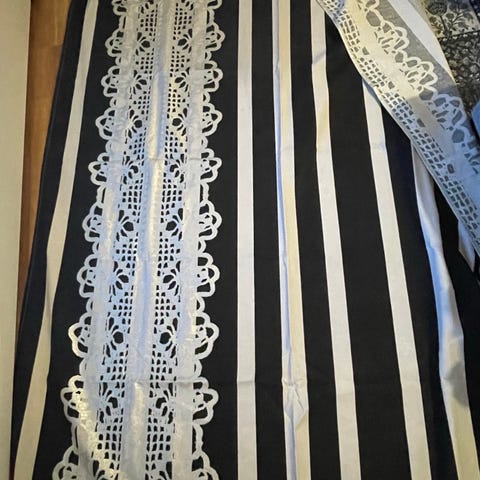 Kaunis, hyväkuntoinen, verhon alahulpio 8cm, ripustetaan nipsuilla. Pesun jäljiltä, silitetty. Verhoja on vain tämä yksi.