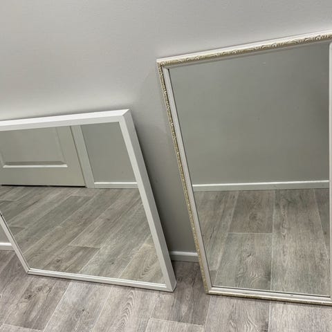 Myydään hyväkuntoinen peili, jossa kauniit kehykset. Peilin koko kokonaisuudessa 100*60cm. Kehysten leveys 11 cm.
