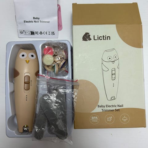 Electric nail file from Cherish with a non-slip edge that makes it easier to file your child's nails. It comes with four replaceable files and a handy case