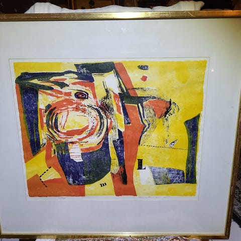 Inari Krohnin vedos 435/500 "Syksy". Työn korkeus on 20 cm ja leveys 27 cm. Kehys 41 X 49 cm.