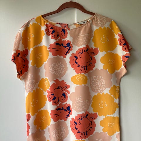 Marimekko Eine Unikko paita, koko S. Voi käyttää vyöllä tai ilman. 100% viskoosia. Erinomainen kunto, ovh 159€. Väri vihreä-vaaleanpunainen.