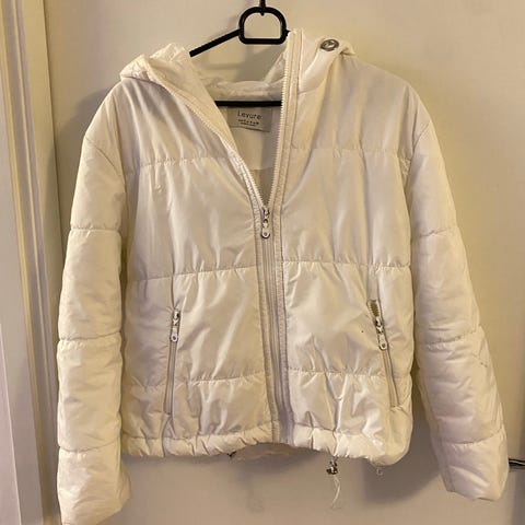 naisten takki valkoisena, koko S. Takissa on irrotettava turkisvuori . Takki sopii viileämpiin säihin ja tarjoaa tyylikkään ulkoasun.