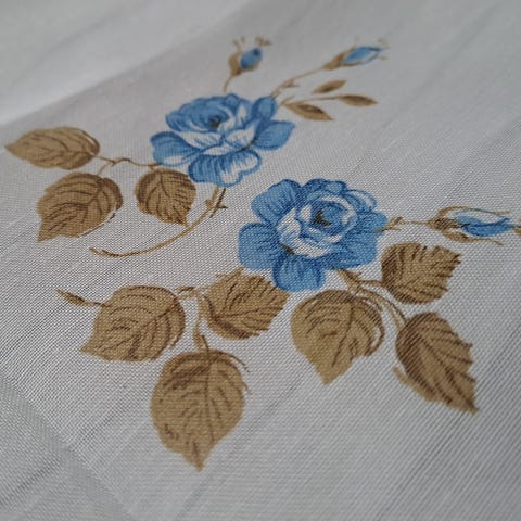 Vuosikymmeniä vanha juuttikankaalle painettu pöytäliina. Ehjä ja tahraton. Koko 23cm x 60cm.