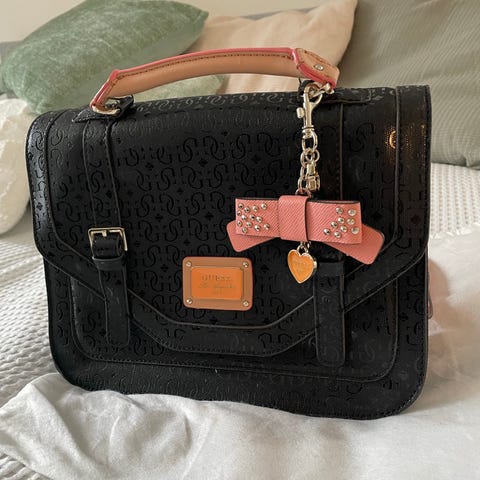 Vähän käytetty pieni Guessin laukku. Sisällä useita taskuja. Olkahihnan voi irrottaa, jolloin toimii myös kukkarona, säilytyspussina tai puhelimen suojapussina.