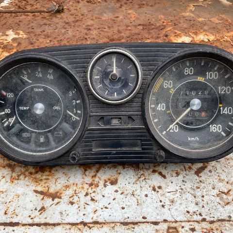 Vanhan Mercedes Benzin nopeusmittari ja bensamittari, en tiedä mistä mallista, mutta ehkä MB L 206 tai L 306, tai Hanomag F sarjan, F 30 tai F 35 mersun, no ainakin sinne päin? Saattaa olla, että käy muihinkin? Nopeusmittari ainakin toimii, kun porakoneella pyörittää. Bensamittarikin toimii (lamppu ei toimi).