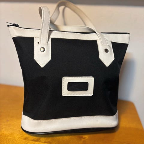 Retro musta-valkoinen kerhokassi, aikuisten koko n. 38x35cm, siistissä kunnossa.